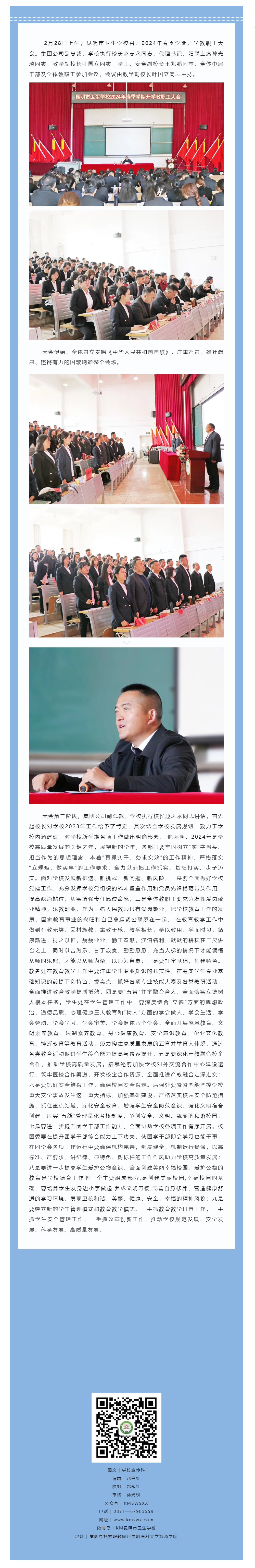 【教职工大会】聚焦高质量 谱写新篇章——昆明市卫生学校召开2024年春季学期开学教职工大会